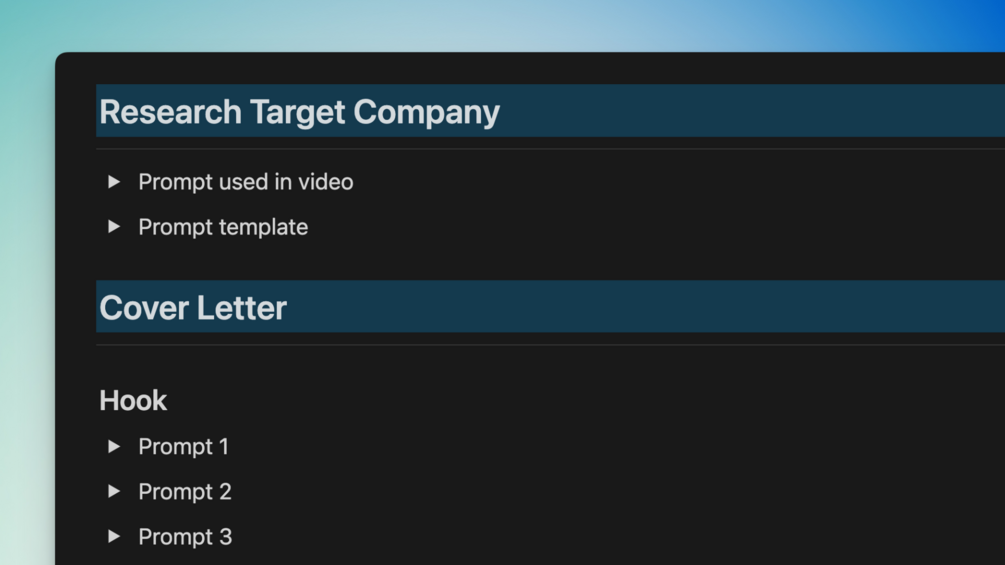 - Cover Letter - Following the "Chain of Thought" prompting technique, we use 6 separate prompts to generate the first draft of your cover letter