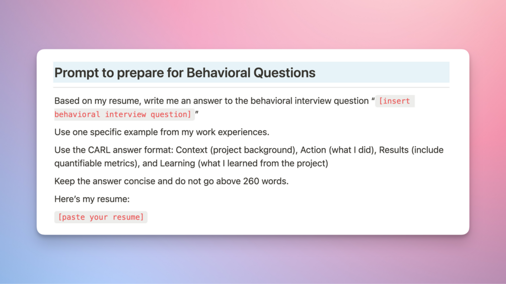 ✅ Use the CARL framework + ChatGPT to prepare for all Behavioral questions (prompt template in comments)